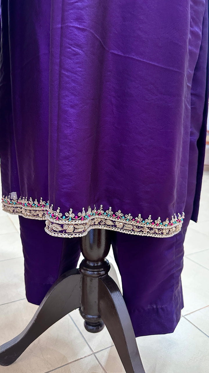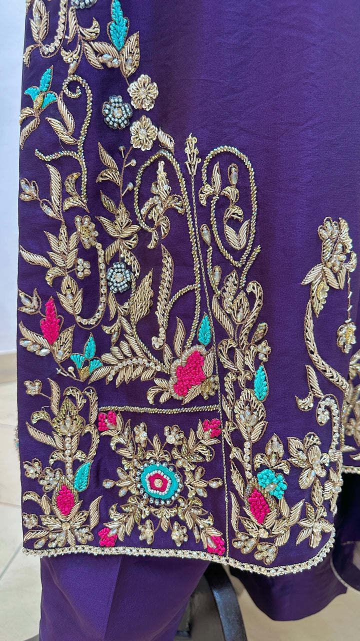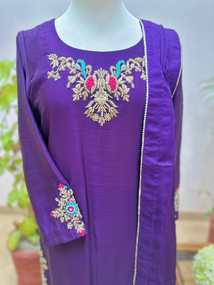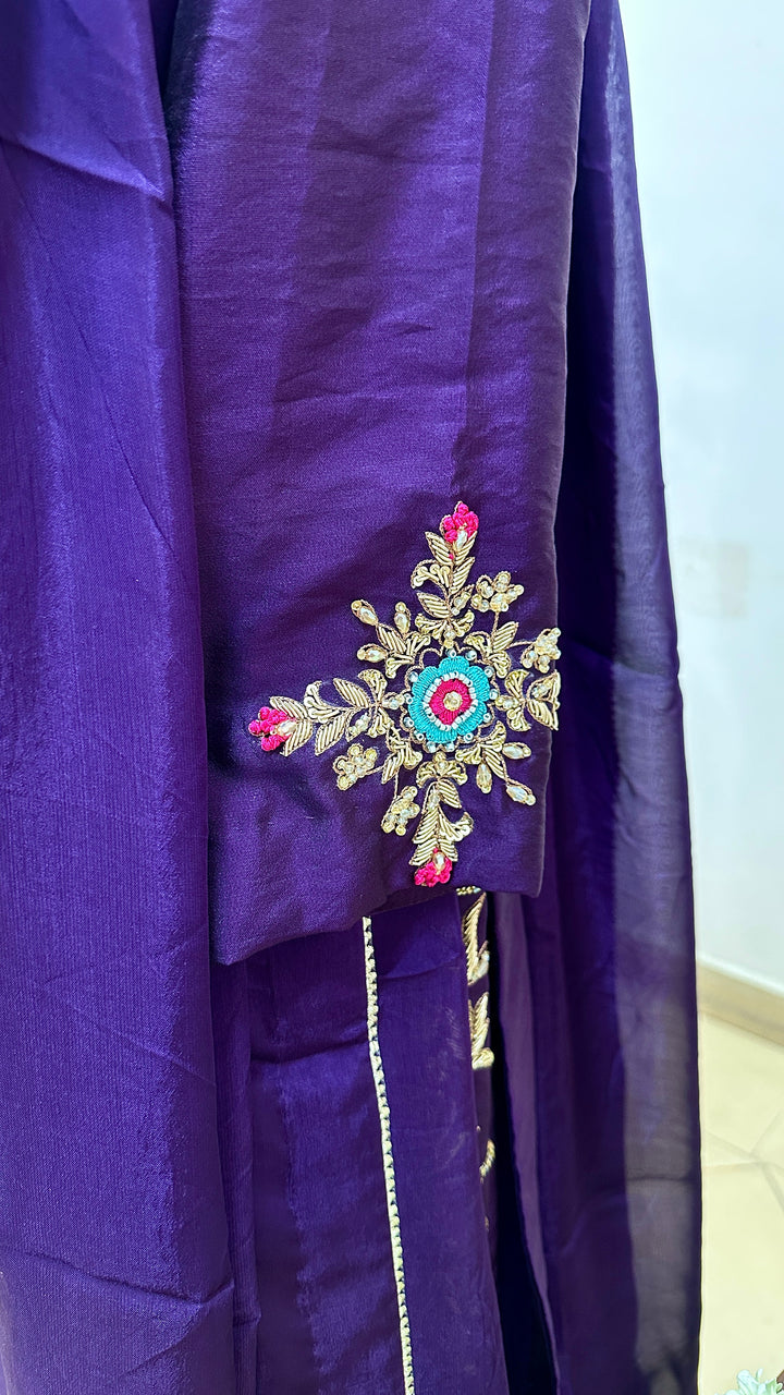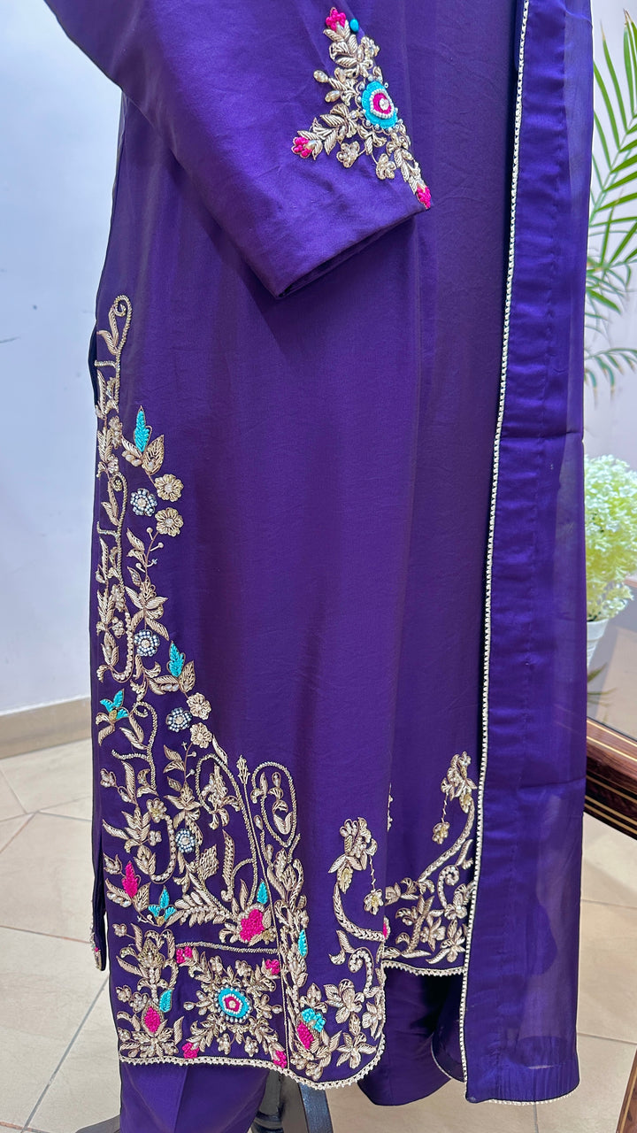 Indulge in pure sophistication with ZIRFI’s 3Pc Tesel Silk Collection, a symbol of luxury and traditional artistry. Crafted from premium Tesel Silk, this outfit offers an exquisite shine and fluid drape, enhanced by delicate handcrafted Ada Work for an opulent festive look.