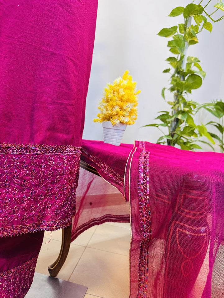 Elevate your festive wardrobe with ZIRFI’s premium Khadi Lawn 3-piece suit. Featuring a breathable lawn shirt and trouser, paired with a handcrafted net dupatta adorned with gotta work, this ensemble is perfect for weddings, Eid, and seasonal celebrations.